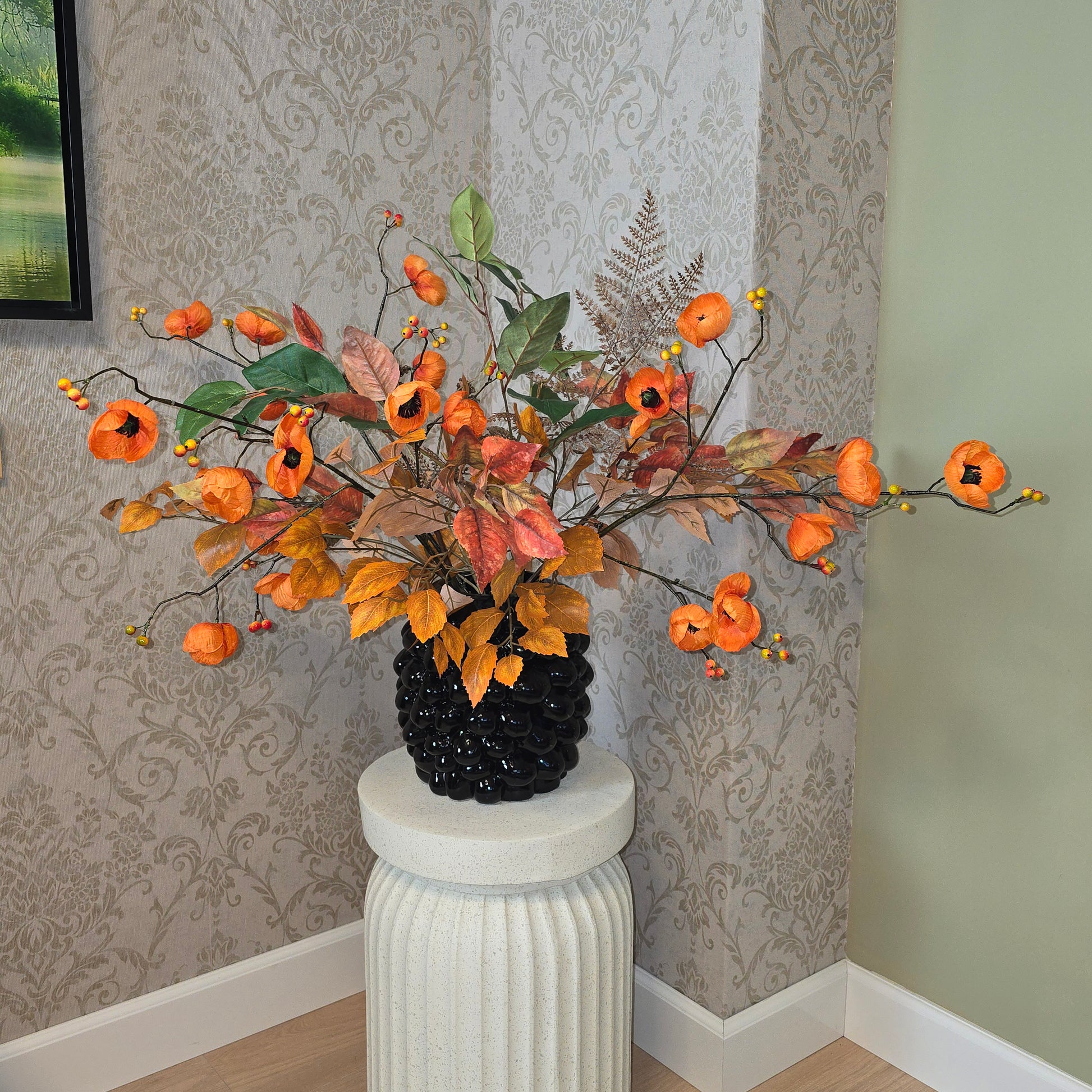 Elk boeket is uniek, dus de inhoud van het boeket, inclusief de vaas, is precies wat je zult ontvangen.